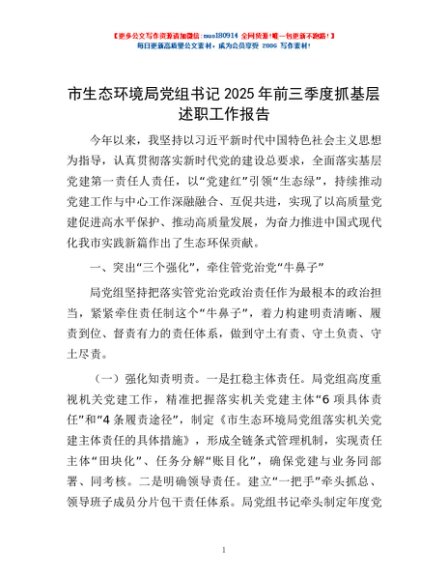 / 市生态环境局党组书记2025年前三季度抓基层述职工作报告