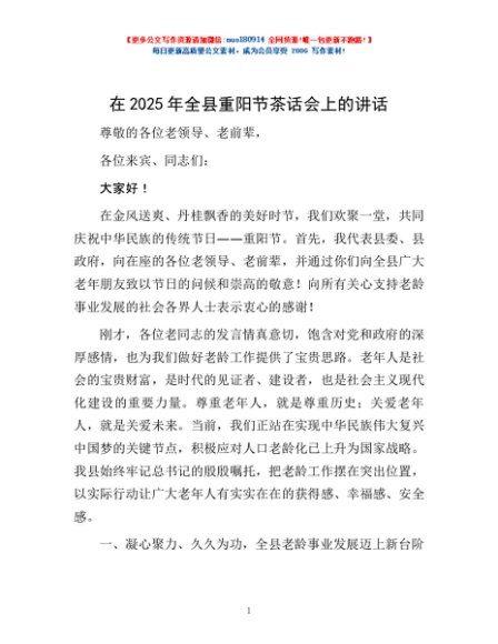 / 在2025年全县重阳节茶话会上的讲话