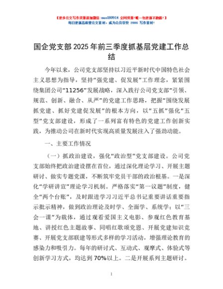 / 国企党支部2025年前三季度抓基层党建工作总结