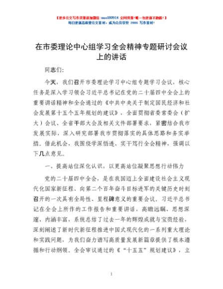 / 在市委理论中心组学习全会精神专题研讨会议上的讲话