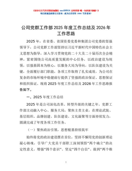 / 公司党群工作部2025年度工作总结及2026年工作思路
