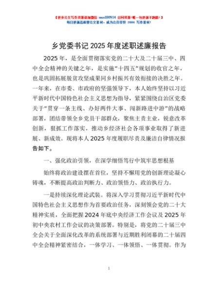 / 乡党委书记2025年度述职述廉报告