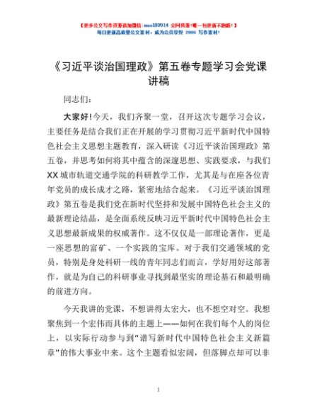 / 《习近平谈治国理政》第五卷专题学习会党课讲稿