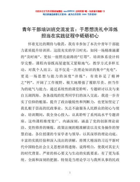 / 题-青年干部培训班交流发言:于思想洗礼中淬炼担当 在实践征程中砥砺初心