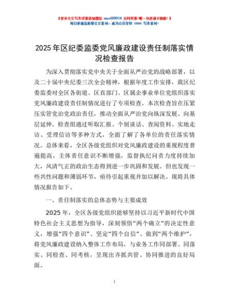 / 2025年区纪委监委党风廉政建设责任制落实情况检查报告