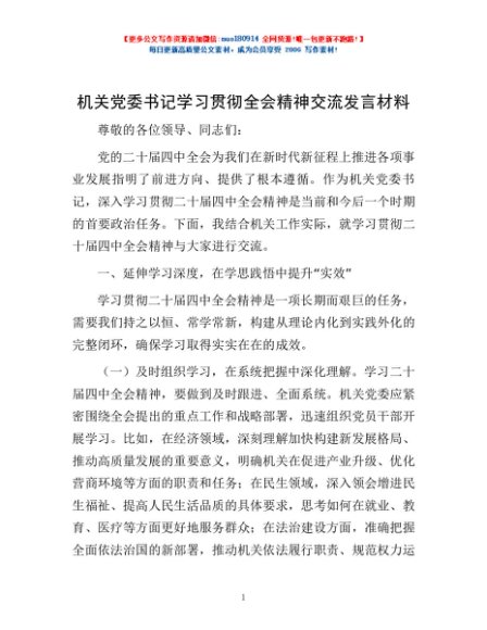 / 机关党委书记学习贯彻全会精神交流发言材料