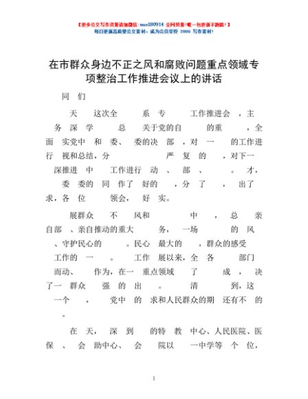 / 在市群众身边不正之风和腐败问题重点领域专项整治工作推进会议上的讲话