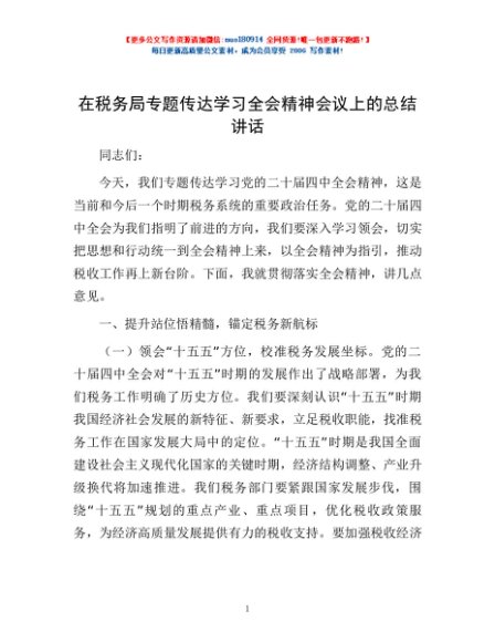 / 在税务局专题传达学习全会精神会议上的总结讲话