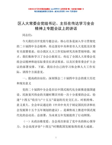 / 区人大常委会党组书记、主任在传达学习全会精神上专题会议上的讲话