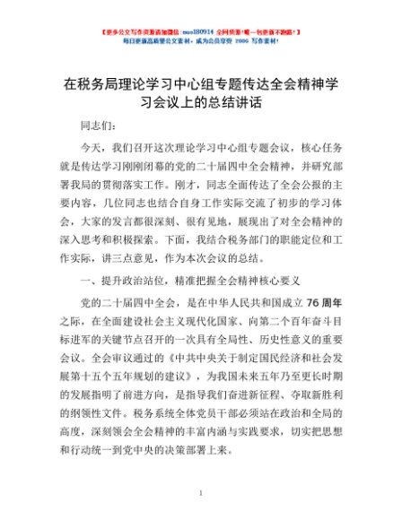/ 在税务局理论学习中心组专题传达全会精神学习会议上的总结讲话