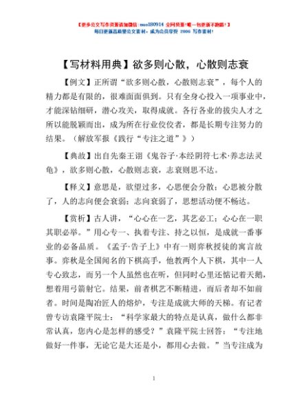 / 【写材料用典】欲多则心散,心散则志衰