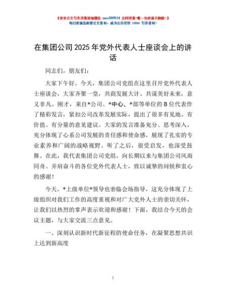 / 在集团公司2025年党外代表人士座谈会上的讲话