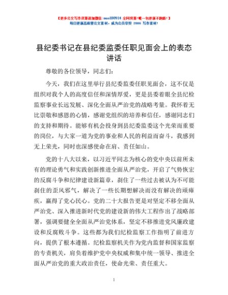 / 县纪委书记在县纪委监委任职见面会上的表态讲话