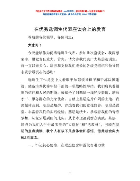 / 在优秀选调生代表座谈会上的发言