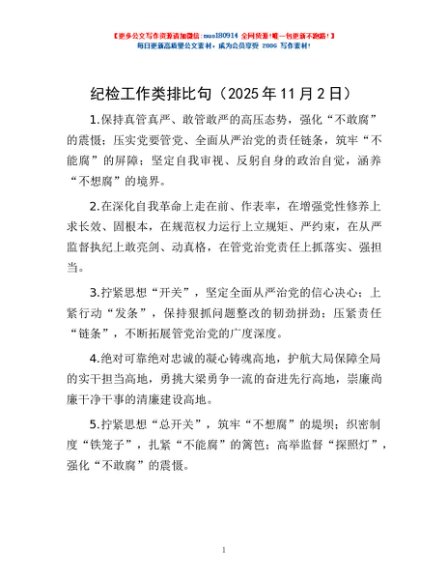 / 纪检工作类排比句(2025年11月2日)