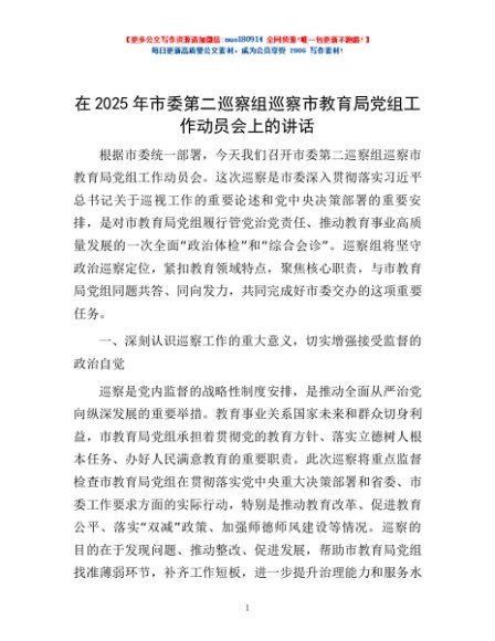 / 在2025年市委第二巡察组巡察市教育局党组工作动员会上的讲话