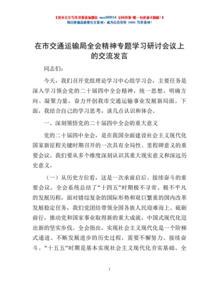 / 在市交通运输局全会精神专题学习研讨会议上的交流发言