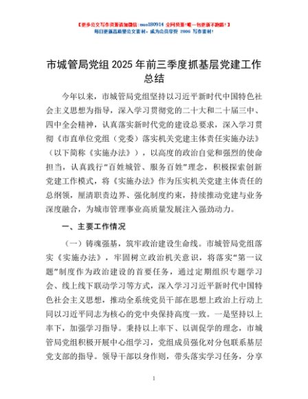 / 市城管局党组2025年前三季度抓基层党建工作总结