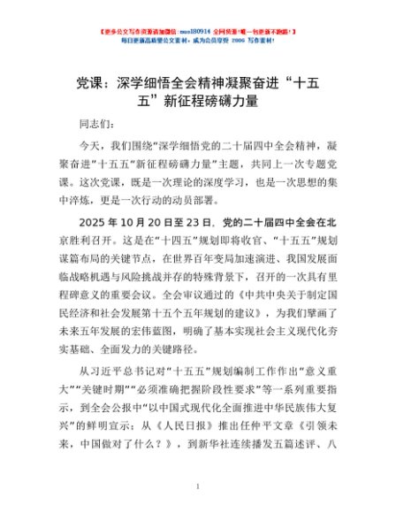党课:深学细悟全会精神凝聚奋进“十五五”新征程磅礴力量