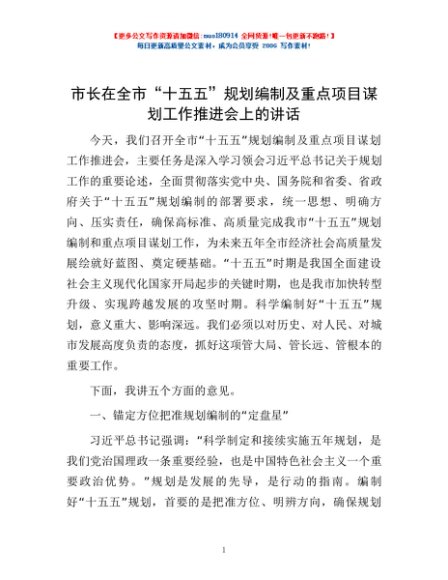 / 市长在全市“十五五”规划编制及重点项目谋划工作推进会上的讲话