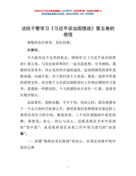 / 法院干警学习《习近平谈治国理政》第五卷的感悟
