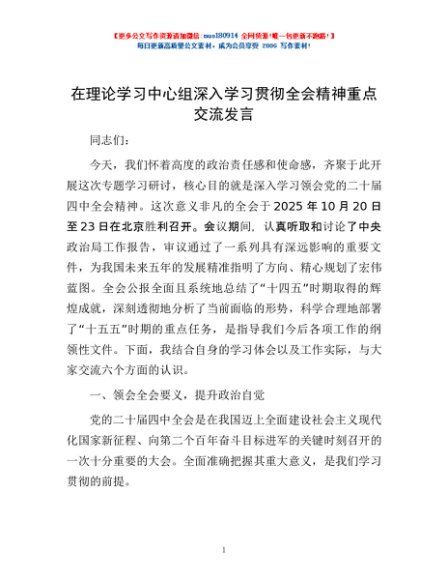 / 在理论学习中心组深入学习贯彻全会精神重点交流发言
