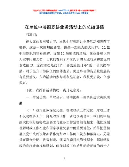 / 在单位中层副职讲业务活动上的总结讲话
