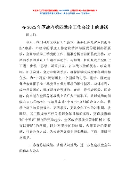 / 在2025年区政府第四季度工作会议上的讲话