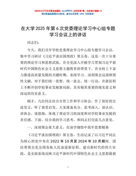 / 在大学2025年第6次党委理论学习中心组专题学习会议上的讲话