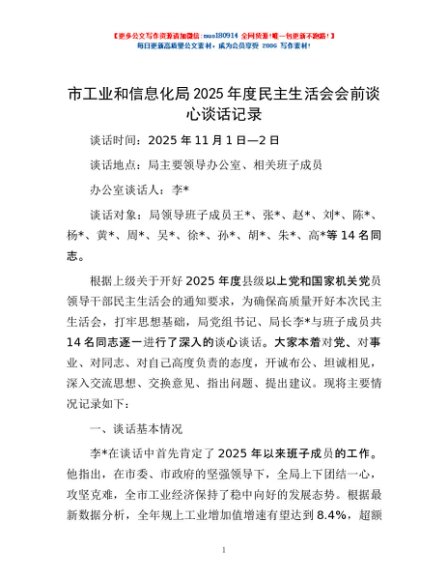 / 市工业和信息化局2025年度民主生活会会前谈心谈话记录