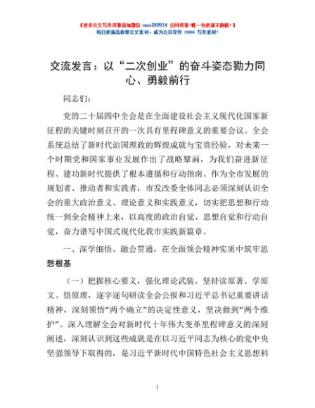 / 交流发言:以“二次创业”的奋斗姿态勠力同心、勇毅前行