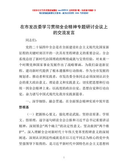 / 在市发改委学习贯彻全会精神专题研讨会议上的交流发言