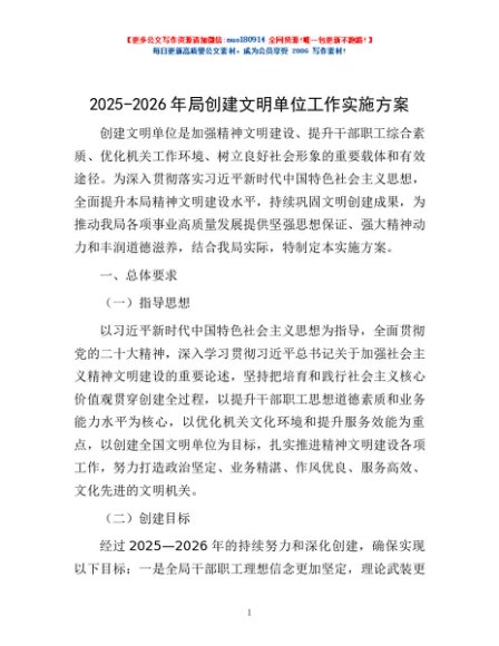 / 2025-2026年局创建文明单位工作实施方案