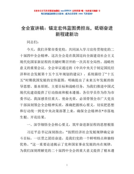 全会宣讲稿:锚定宏伟蓝图勇担当,砥砺奋进新程建新功