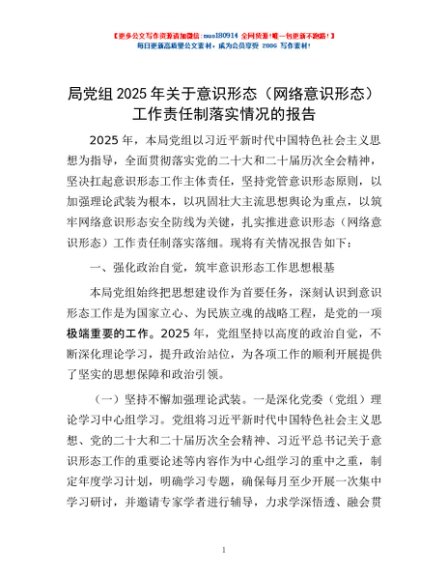 / 局党组2025年关于意识形态(网络意识形态)工作责任制落实情况的报告