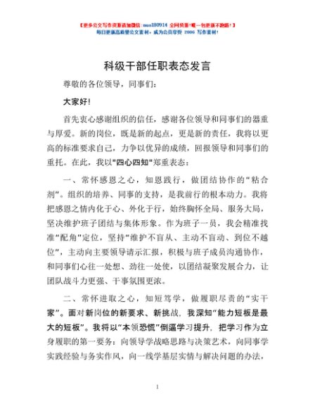 / 科级干部任职表态发言