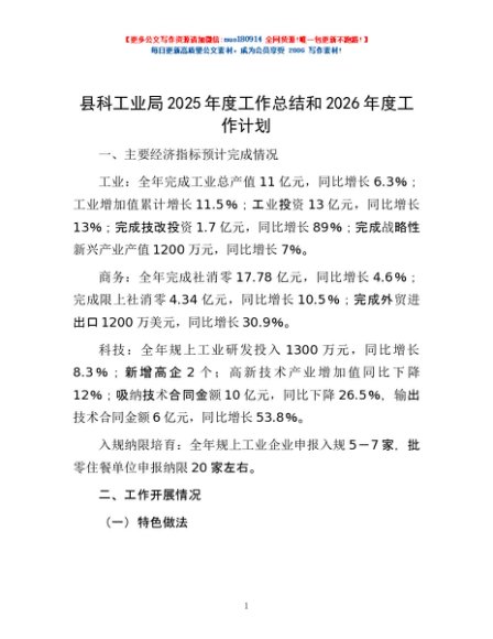 / 县科工业局2025年度工作总结和2026年度工作计划