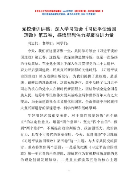 / 党校培训讲稿:深入学习领会《习近平谈治国理政》第五卷,感悟思想伟力凝聚奋进力量