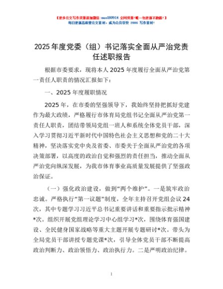 / 2025年度党委(组)书记落实全面从严治党责任述职报告