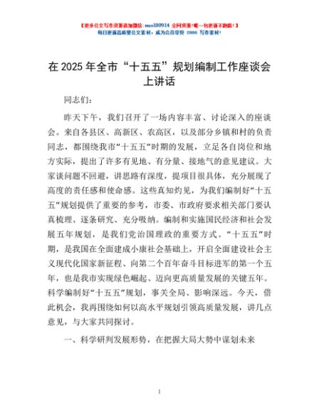 / 在2025年全市“十五五”规划编制工作座谈会上讲话