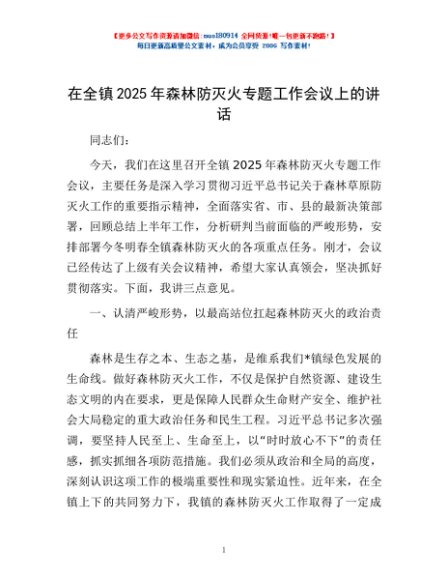 / 在全镇2025年森林防灭火专题工作会议上的讲话