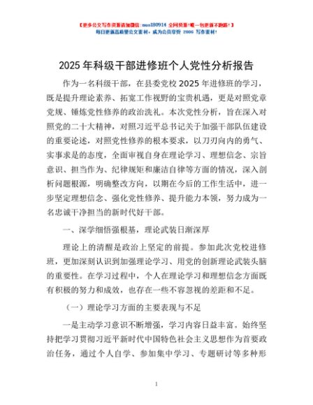 / 2025年科级干部进修班个人党性分析报告
