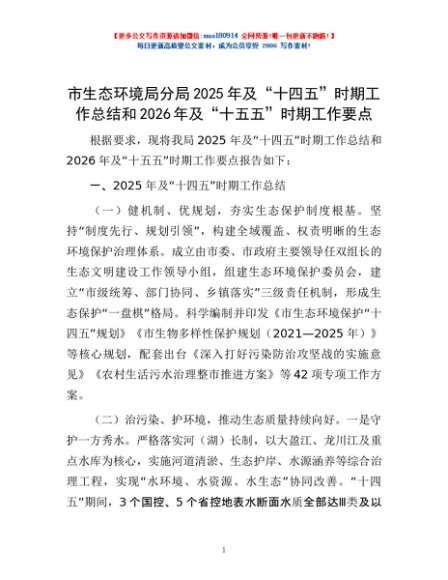 / 市生态环境局分局2025年及“十四五”时期工作总结和2026年及“十五五”时期工作要点