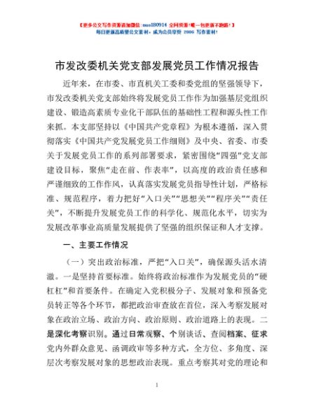 / 市发改委机关党支部发展党员工作情况报告