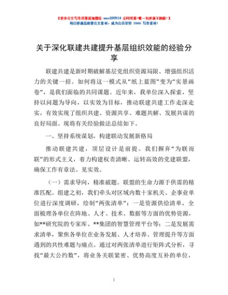 / 关于深化联建共建提升基层组织效能的经验分享