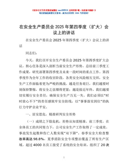 在安全生产委员会2025年第四季度(扩大)会议上的讲话