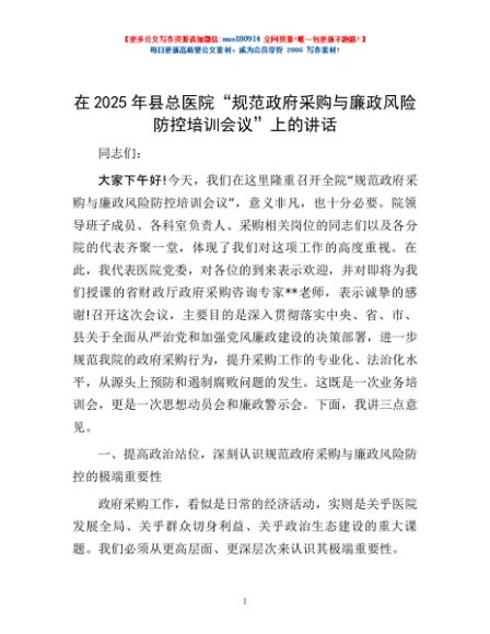 / 在2025年县总医院“规范政府采购与廉政风险防控培训会议”上的讲话