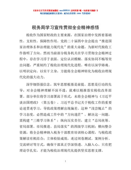 / 税务局学习宣传贯彻全会精神感悟