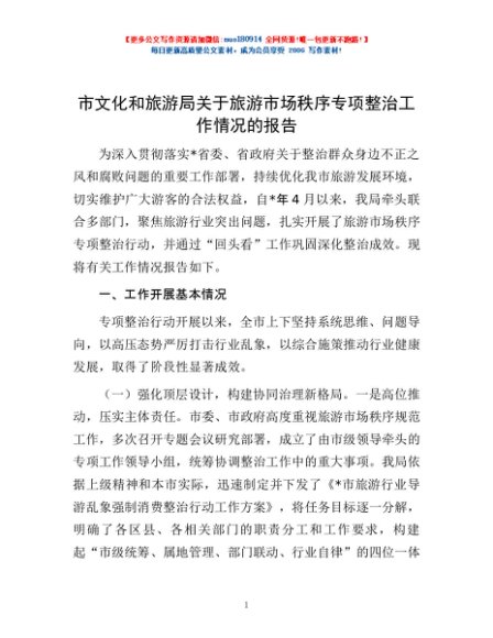 / 市文化和旅游局关于旅游市场秩序专项整治工作情况的报告