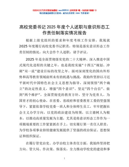 / 高校党委书记2025年度个人述职与意识形态工作责任制落实情况报告